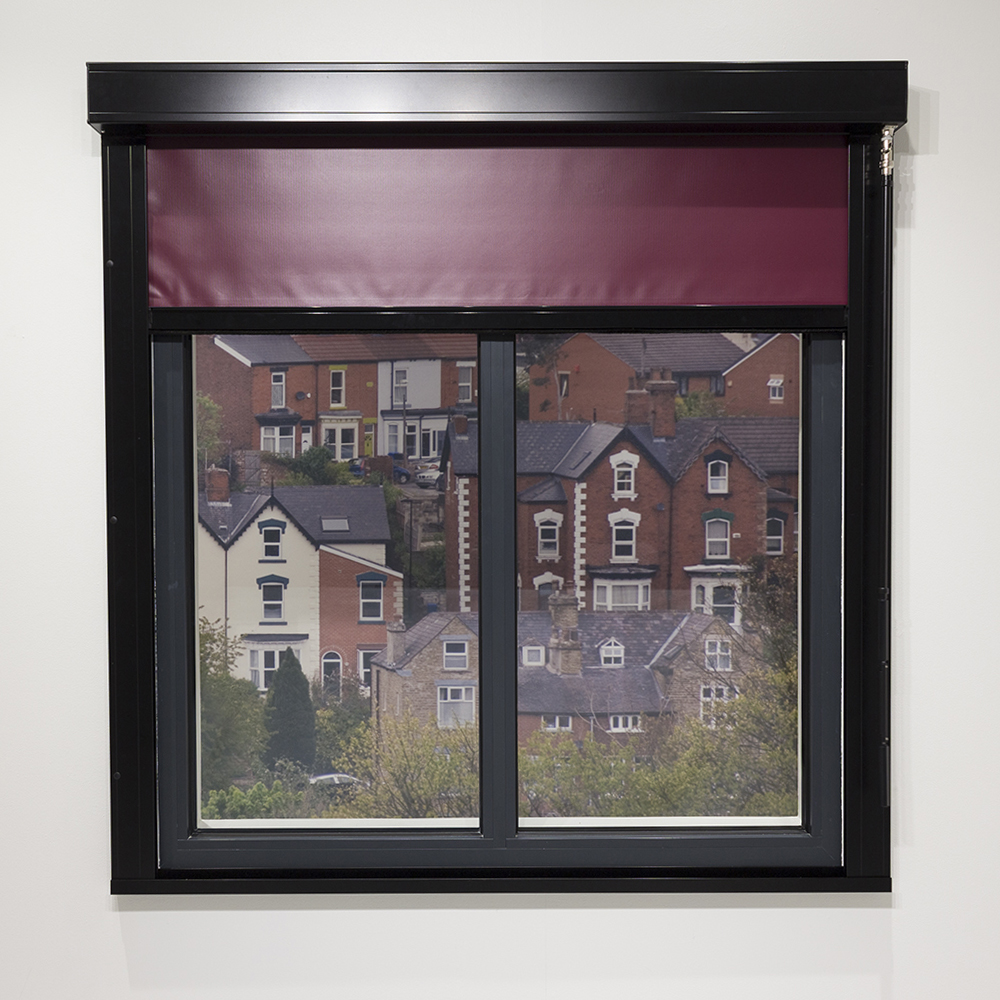 The blinds provide 100% blackout and can be operated by fixed switch or remote control via its 230v AC motor.